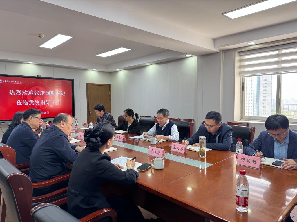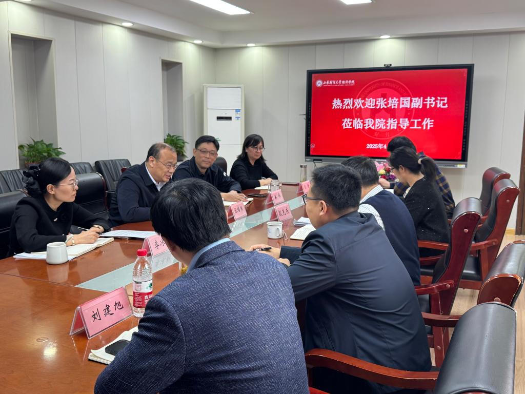 4月15日下午,校党委副书记张培国到太阳成城集团tyc234cc调研指导,座谈会在舜耕校区办公楼会议室举行。太阳成城集团tyc234cc党委书记姜伟主持座谈。