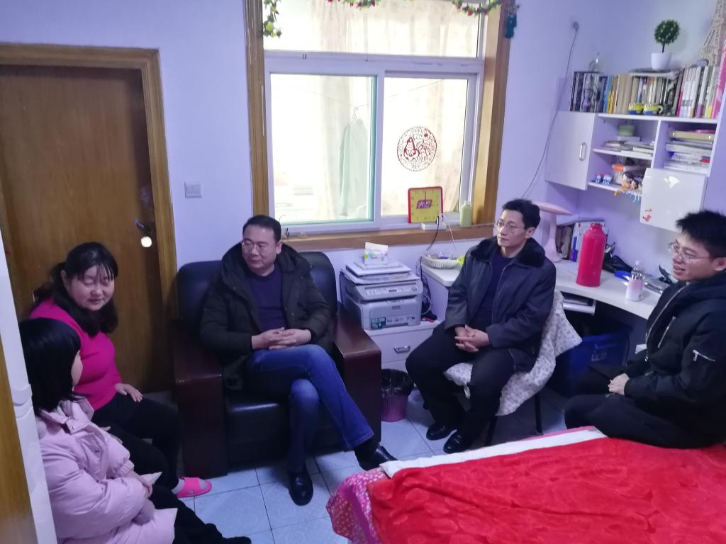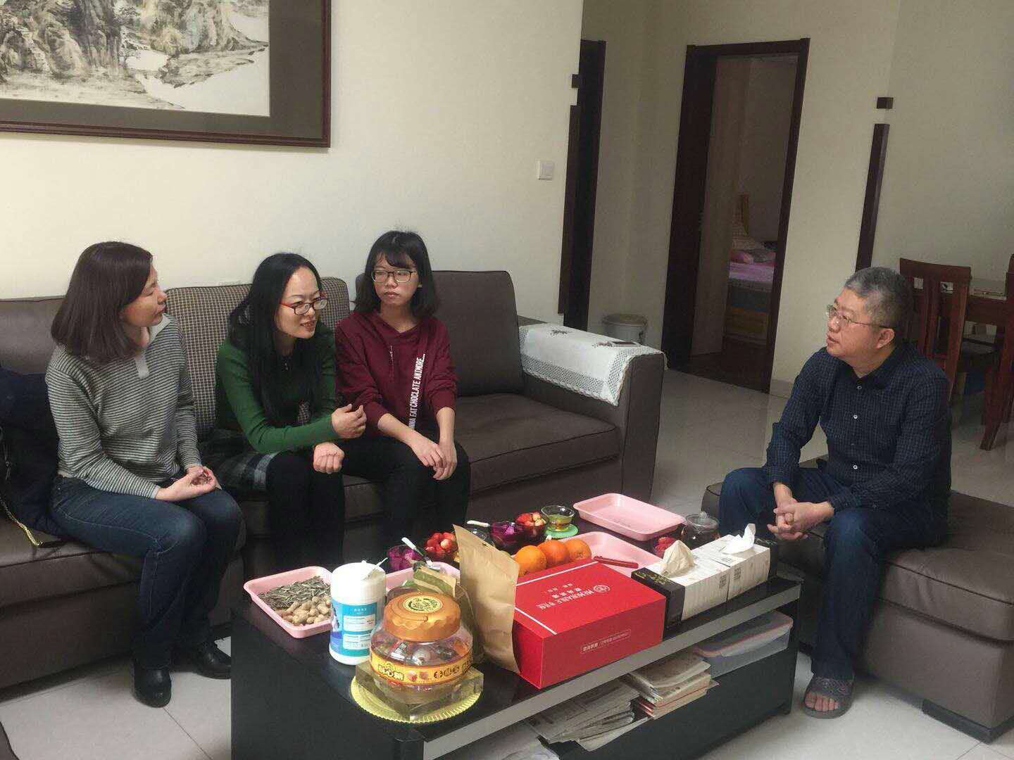 1月30日上午,太阳成城集团tyc234cc党委书记吴红文、副书记任海伦,辅导员周新秀来到位于济南市市中区二环南路2014级学生李晓雅家中。李晓雅是我院优秀学生的代表,中共党员,曾获省级优秀毕业生、校长奖学金,多次获一等奖学金、校优秀学生干部、优秀学生、优秀团员等,曾任团支书。作为专业排名第一名和推免考试第一名的获得者,她收到了暨南大学硕士研究生推荐免试入学资格,却因母亲身体不好拒绝这一机会选择成为考研大军中的一员。领导老师们就李晓雅的生活、学习和考研情况与家长及学生进行了亲切交流,鼓励并支持学生继续深造,以扩展知识视野,提高学术水平,增强就业竞争力,并介绍了目前国内高校研究生的奖励办法、额度和科研激励政策。
