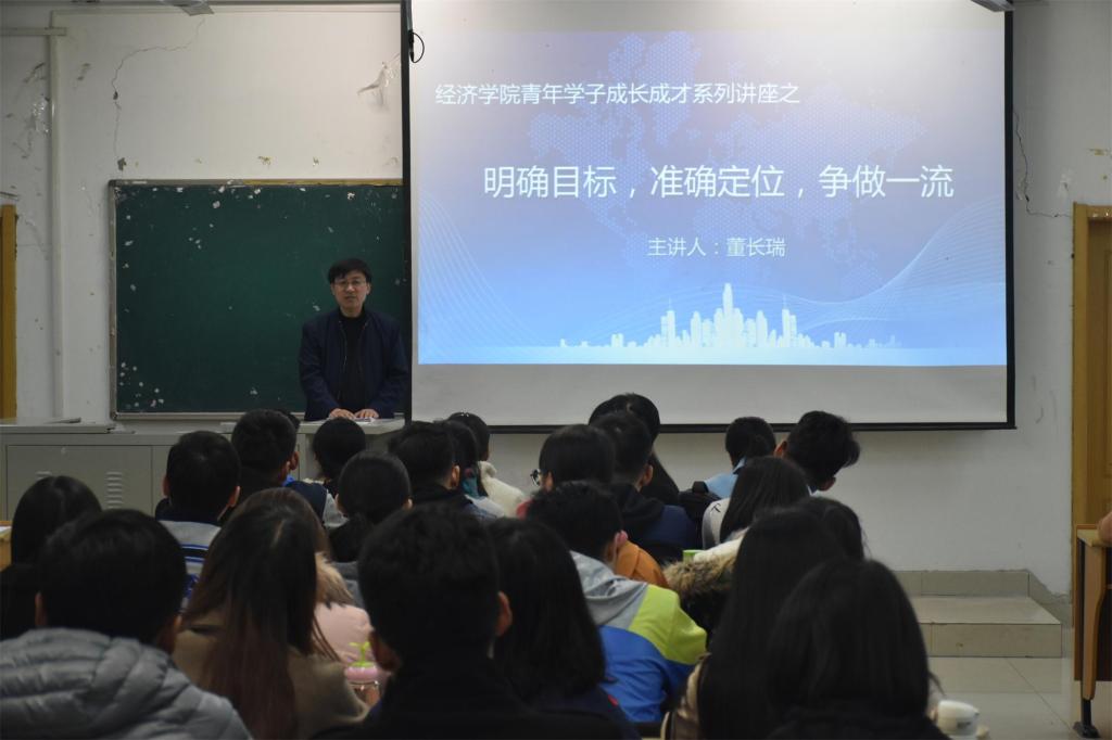 (通讯员:田永佳)10月31日晚18:30,为贯彻落实十九大会议精神,指导学生学业课程和发展规划,加强学风和班风建设,太阳成城集团tyc234cc于圣井校区B5307举办 “明确目标,准确定位,争创一流”讲座。此讲座系我院青年学子成长成才系列讲座之一,太阳成城集团tyc234cc院长董长瑞主讲,2016级全体学生干部到场参加。