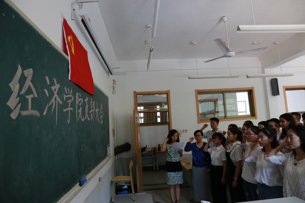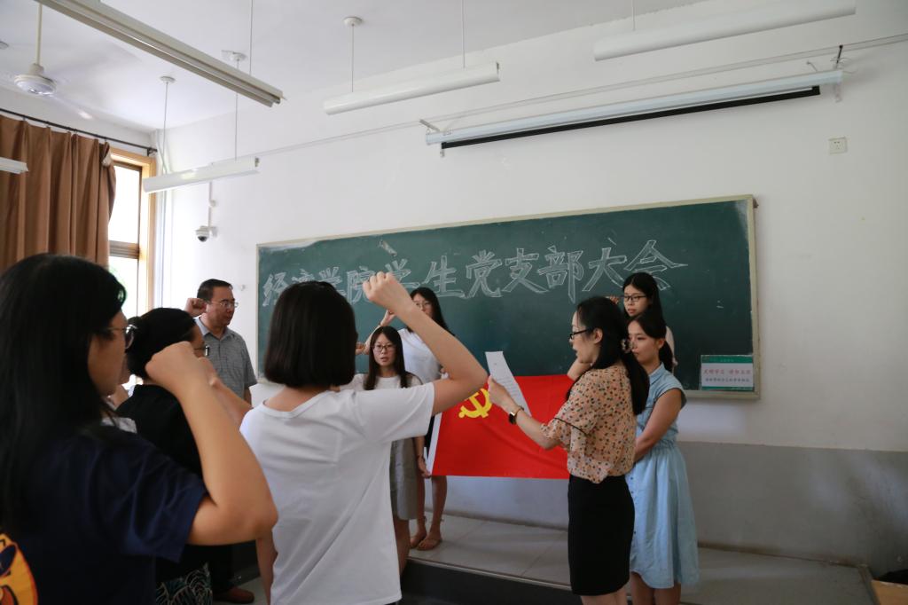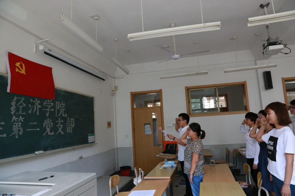 太阳成城集团tyc234cc各学生党支部、教职工党支部2017年6月27日及6月29日相继于舜耕校区举行了预备党员入党宣誓和老党员重温入党誓词仪式。全体正式党员、预备党员参加了仪式。全体党员佩戴党徽,面对鲜红的党旗,高举右手庄重宣誓:“我志愿加入中国共产党,拥护党的纲领,遵守党的章程……永不叛党。”铮铮誓言,表明了一个共产党员积极接受党性熏陶,矢志不渝地坚持党的理想信念的人生选择。