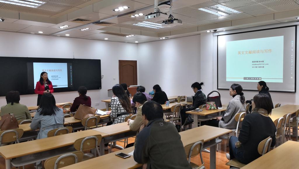 徐小恒副教授本次主讲的示范课程是《英文文献阅读与写作》。她围绕英文文献阅读心得、英文文献搜索与选取、英文论文写作等方面进行了精彩分享。课程结束后,团队教师就相关内容进行了讨论与交流。