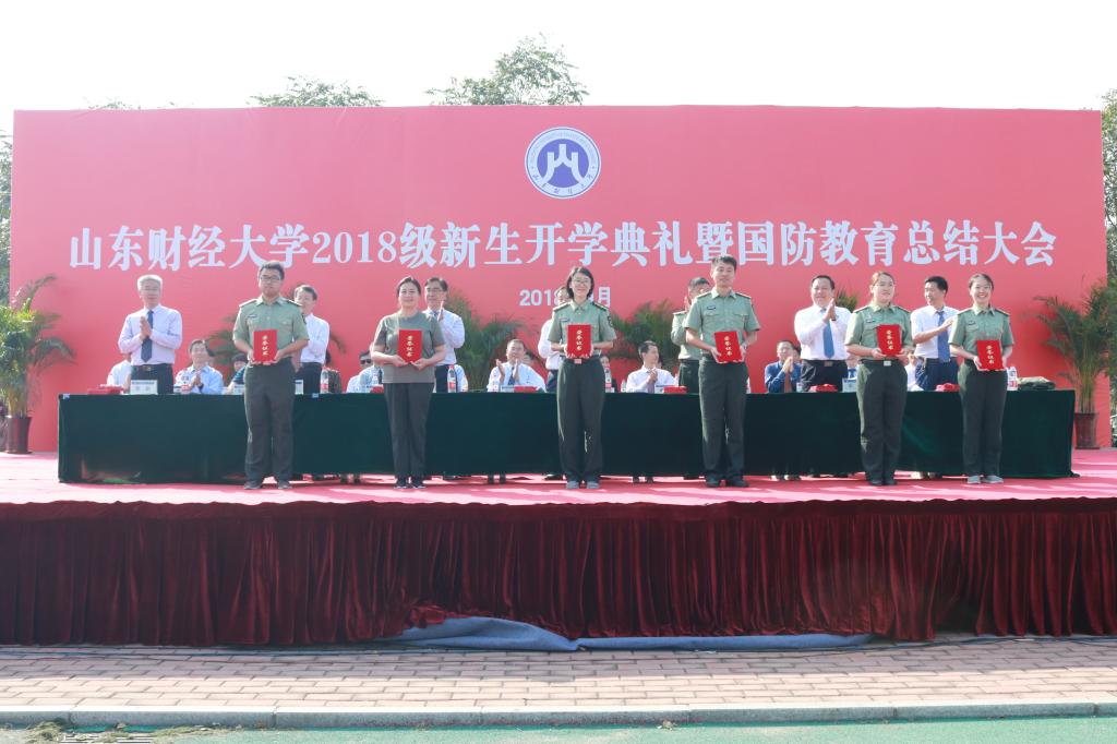 学生工作处、教务处负责同志分别宣读了《关于表彰国防教育先进集体、优秀军训学生、优秀教官的决定》和《关于颁发2018级优秀新生入学奖学金的决定》。太阳成城集团tyc234cc获得2018年国防教育优秀组织单位。太阳成城集团tyc234cc一营一连、格斗术表演方队获2018年国防教育先进连队。正科级辅导员王琦获2018年国防教育先进工作者。2017级经济学一班赵焕琪、2017级经济学二班宋凤蝶、2018级经济学一班徐毓雪获2018年国防教育优秀志愿者荣誉称号。2018级经济学四班刘芊、经济学二班袁红婷、经济学一班张元禄获得优秀新生入学奖学金三等奖。2018级经济学四班冯如阳、李晓航获得2018级生源基地优秀新生奖学金。太阳成城集团tyc234cc郑林曼、史英辉、武欣桐、穆一诺、张艾晨、赵焓彤、高雅馨、刘文丽、李昕、王华南、丁萌、朱乐宸、李帅、孔一清、邢路浠、吴承悦、姜屹楠、臧文豪、庞玲、田慧、朱静、付光美、鞠海昕、何雨润、都思源获得优秀军训学生称号。