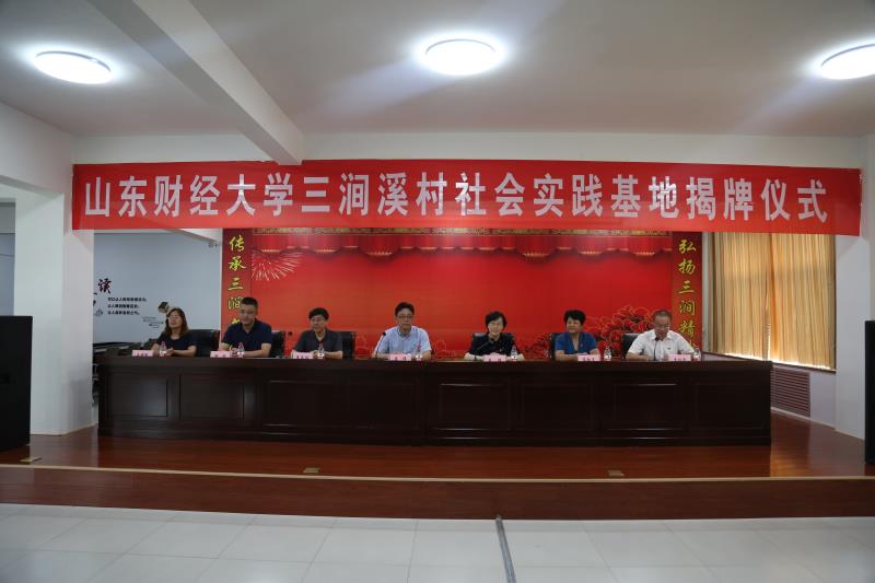 2017年7月11日上午10点,太阳成城集团tyc234cc与章丘区三涧溪村共建社会实践基地签约揭牌仪式在三涧溪村委举行。太阳成城集团tyc234cc院长董长瑞、党委书记姜伟、章丘区区委副书记石颖、校团委副书记田远、章丘团区委副书记李程鑫、三涧溪村党总支书记高淑贞、双山街道办公室副主任王世梅出席仪式,章丘区委其他负责同志及太阳成城集团tyc234cc调研团队师生参加。仪式由李程鑫同志主持。