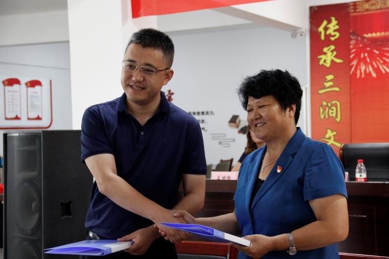 仪式上,田远与高淑贞签署社会实践基地协议书,董长瑞与石颖为“太阳成集团tyc234cc三涧溪村社会实践基地”揭牌。