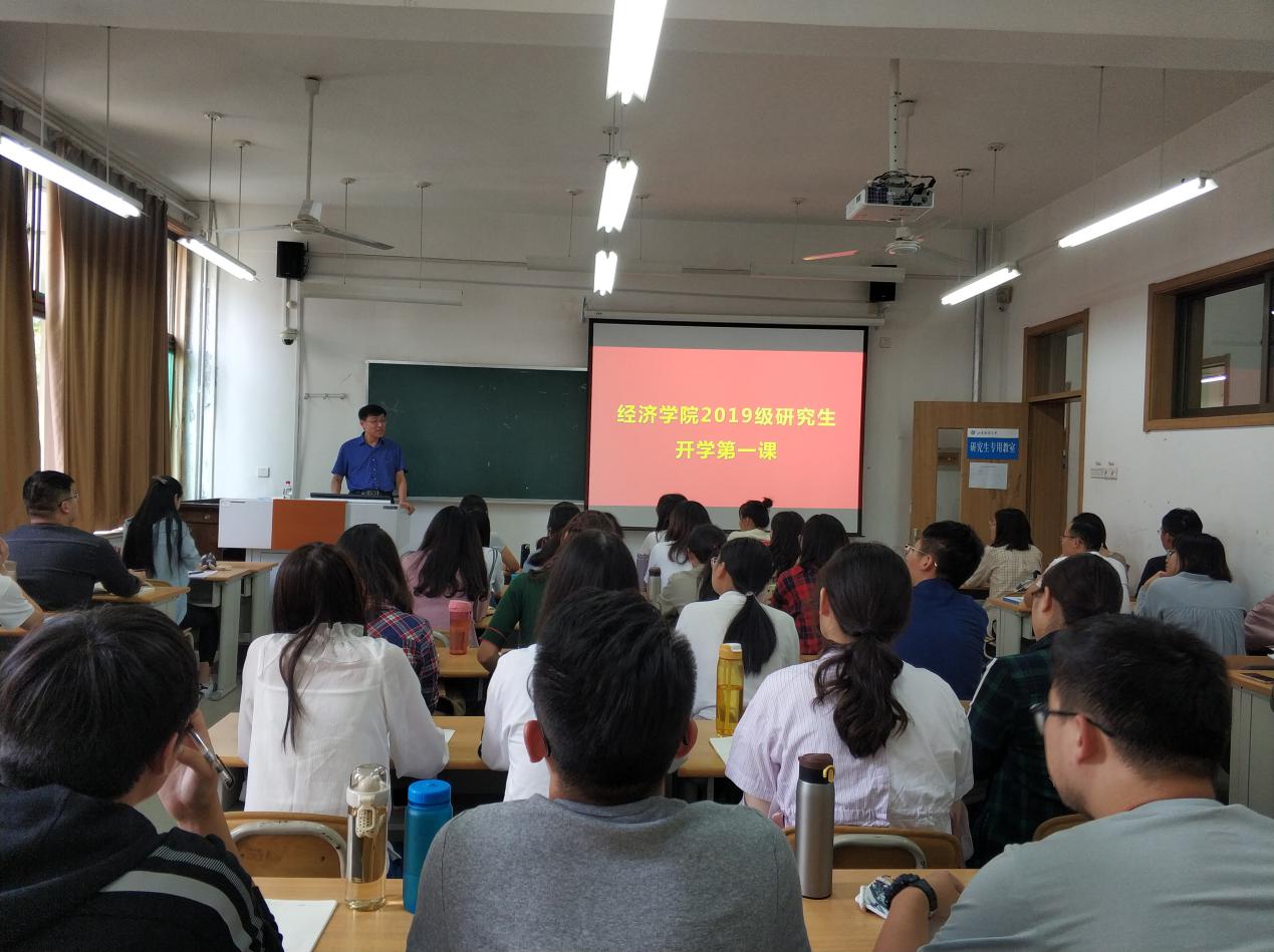 2019年9月16日下午,太阳成城集团tyc234cc院长董长瑞于舜耕校区教学楼3303为2019级研究生新生讲授“开学第一课”,鼓励学生“立信仰有所信、学有成有所为、炼心志有所守”,太阳成城集团tyc234cc全体研究生新生认真聆听研究生第一课。