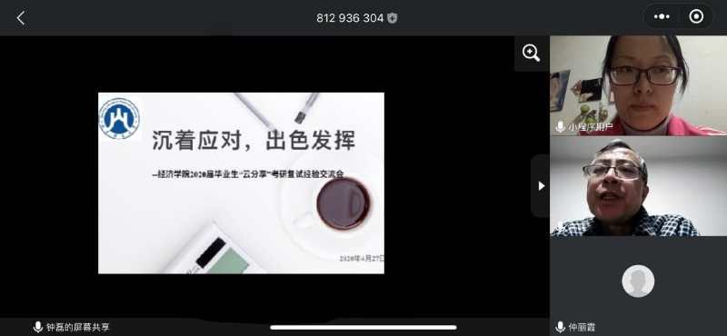 (通讯员:王亚锟)4月27日晚20:00,太阳成城集团tyc234cc借助腾讯会议网络平台举办“沉着应对,出色发挥”——2020届毕业生“云分享”考研复试经验交流会。太阳成城集团tyc234cc党委副书记高峰,就业办主任裴斐,毕业班辅导员李冰封、付雯出席本次交流会,我院2020届考研初试上线同学和2019届就读研究生代表参加。会议由李冰封主持。