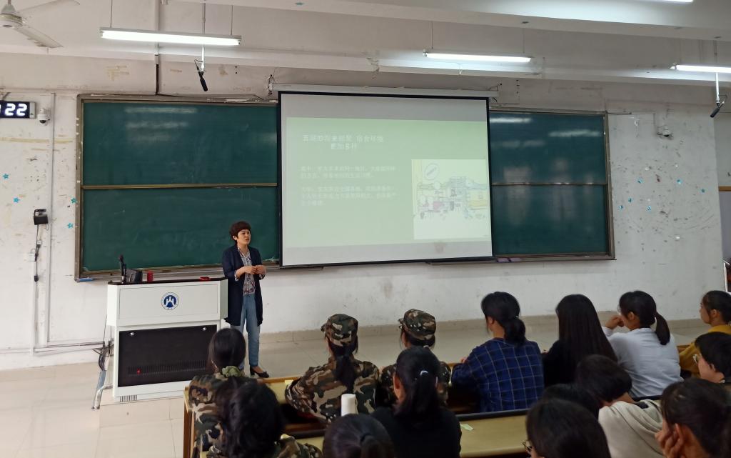 高丽以讲述新冠疫情形势下2020年的特别之处开场,她向同学们介绍大学如何处理好宿舍关系、改变学习模式、支配自由时间和规划生活消费等,提倡同学们要有共情能力,学会感受他人的感受,从点滴小事中传递温暖,享受大学丰富的教育教学资源,为理想积极奋斗。她针对部分大一新生感到迷茫的现象,建议同学们要学会扬长避短,深入研究专业技能,有选择性地参与活动,学会独立,学会适应社会,勇于展现自我。她向新生介绍了心理学和心理咨询的一般知识,分析大学生心理健康教育工作调查问卷结构,详细讲解了心理咨询的流程,介绍了学校心理咨询中心的具体情况,包括组织结构、职责、负责教师、预约方式以及举办的特色活动等。