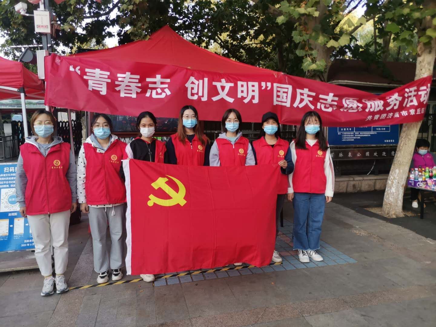 (通讯员:)为进一步发挥青年志愿者在服务党政中心、服务城市品质提升中的示范引领作用,进一步强化文明意识,响应共青团章丘区委、章丘区志愿者协会开展“文明同行·志愿有我”志愿服务活动,国庆节期间,我院组织青年志愿者80余人次到章丘区百脉泉风景区、危山风景区、朱家峪风景区和文博中心图书馆进行志愿服务。
