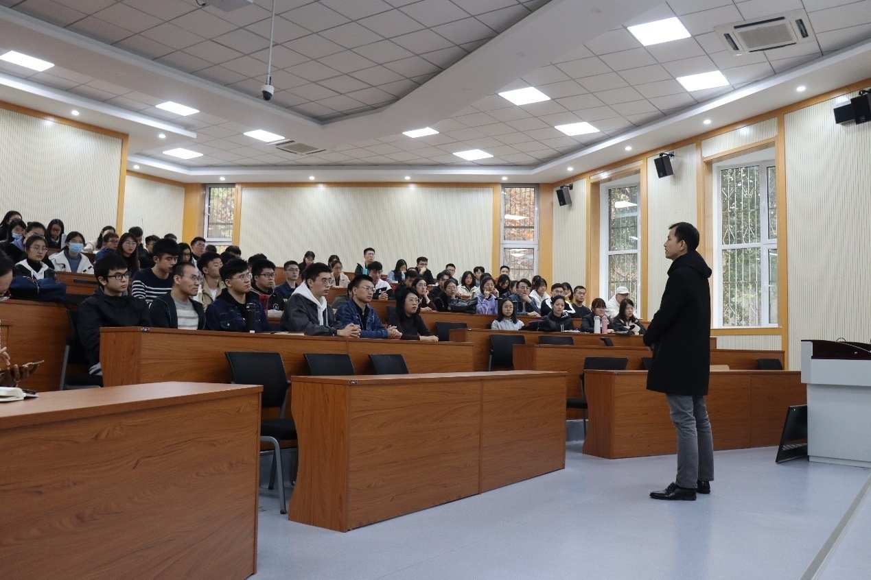谢申祥介绍了学校和学院有关研究生培养的政策规定,指出了研究生培养中存在的问题和有效应对措施,明确了研究生培养的目标和要求,并对研究生们提出三点期望:一是积极沟通,培养兴趣。主动与导师进行多方面交流,增强专业兴趣,提高学习积极性和独立思考的能力;二是重视科研,参与实践。鼓励同学们积极参加学术会议,定期开展学术讨论,组织优秀青年教师和同学进行成果交流,提高研究生的科研能力;三是身心健康,乐观向上。结合自己的读博经历,提醒同学们注重身心健康,及时疏解压力,保持积极乐观的心态。