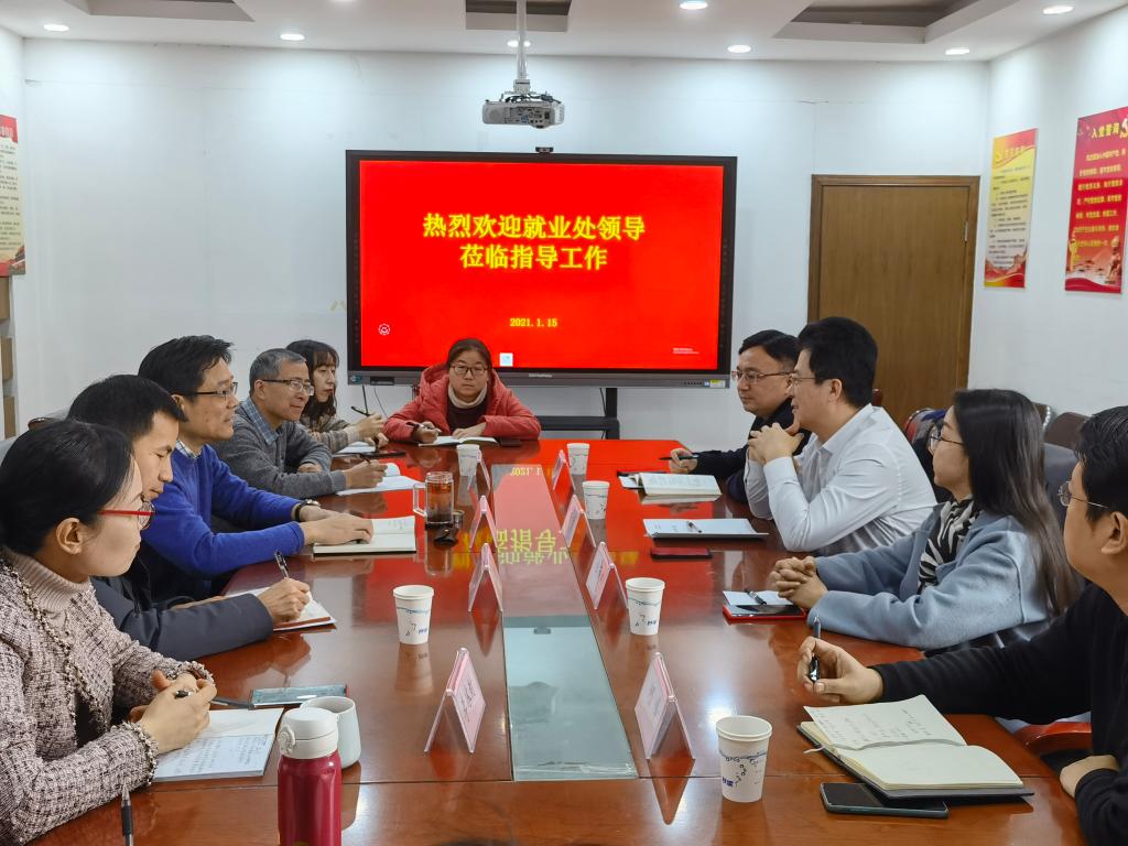 (通讯员:朱海林)2021年1月15日上午,就业指导处处长杨哲,副处长杜丽娜、周广春,科长何峰来学院调研指导就业工作,学院党委书记姜伟,院长谢申祥,党委副书记高峰、李冰封及全体辅导员参加调研指导工作会。