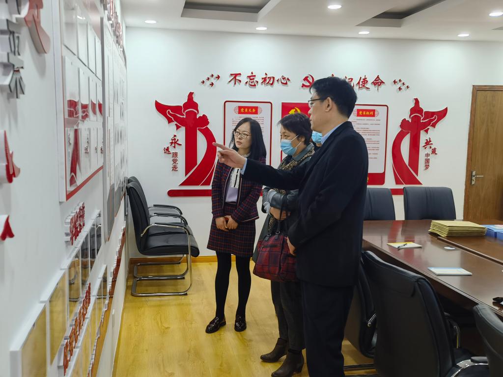院党委书记姜伟,党委副书记高峰、李冰封陪同检查组成员参观了太阳成城集团tyc234cc党员活动室和组织员工作室,并就学院党员发展工作的整体情况、党员分类管理试点工作推进情况及下一步计划做了详细汇报。调研组通过座谈、提问、查阅党员档案材料等形式对我院党员发展工作和分类管理试点工作进行了细致检查。党委相关负责同志现场展示了工作成果,并回答了检查组的有关问题。