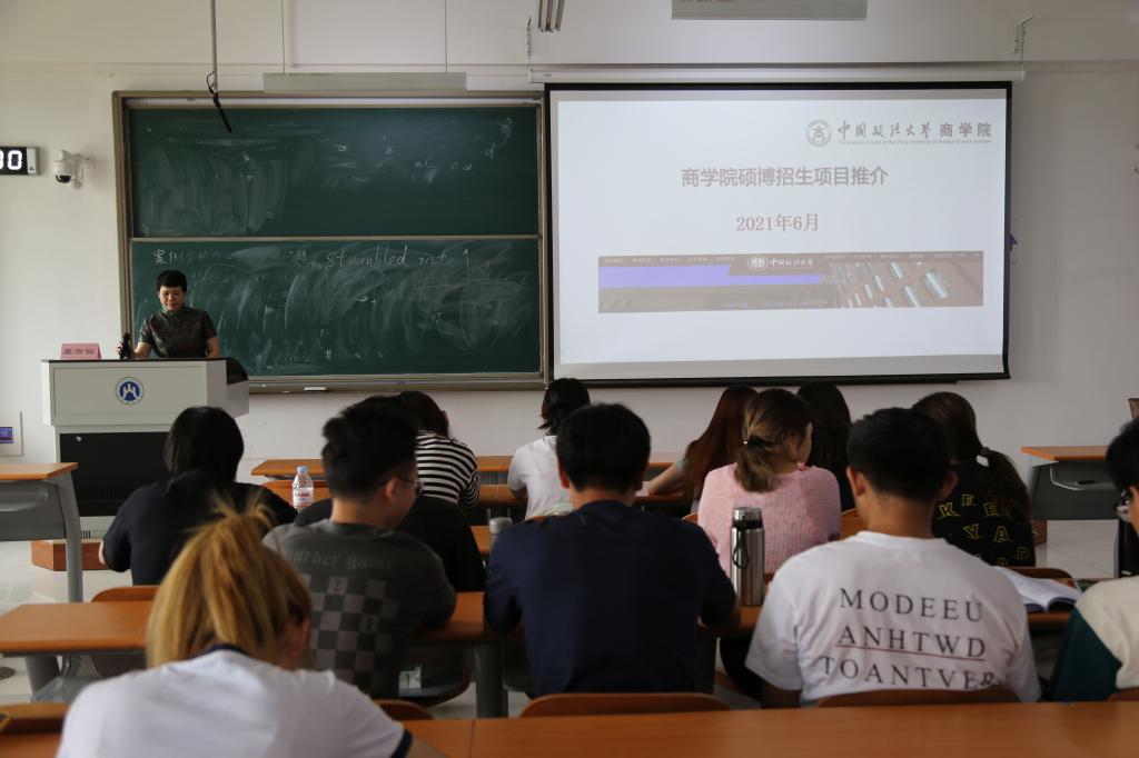 宣讲会分为三部分,全面推介了中国政法大学商学院硕博项目。一是介绍了中国政法大学的整体情况;二是具体讲述中国政法大学商学院的学院优势,重点从五个方面来介绍,分别是学校和学科平台、培养和教育特色、学科和专业特色、结缘商院与法大学缘和学生就业前景;三是详细讲解了中国政法大学的硕博项目,提供了多种咨询通道,具体介绍了申请的流程。