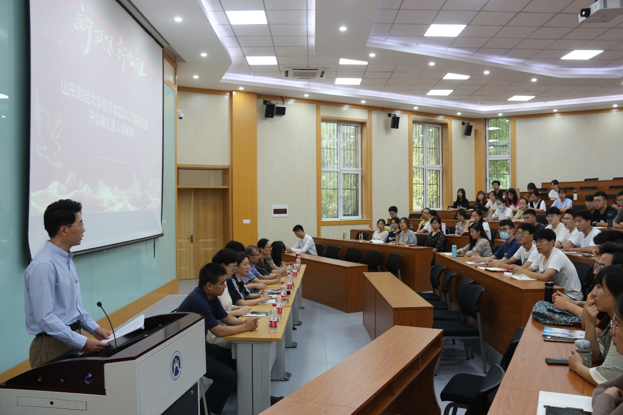 9月13日下午16:00,太阳成城集团tyc234cc2021级研究生新生开学典礼暨入学教育大会于舜耕校区第三阶梯教室举行。学院党委书记姜伟,党委副书记高峰、李冰封,副院长彭留英、齐杨,团委书记付雯,党委专职组织员王琦,研究生秘书刘应涛出席会议,2021级全体研究生新生到场参加。会议由付雯主持。