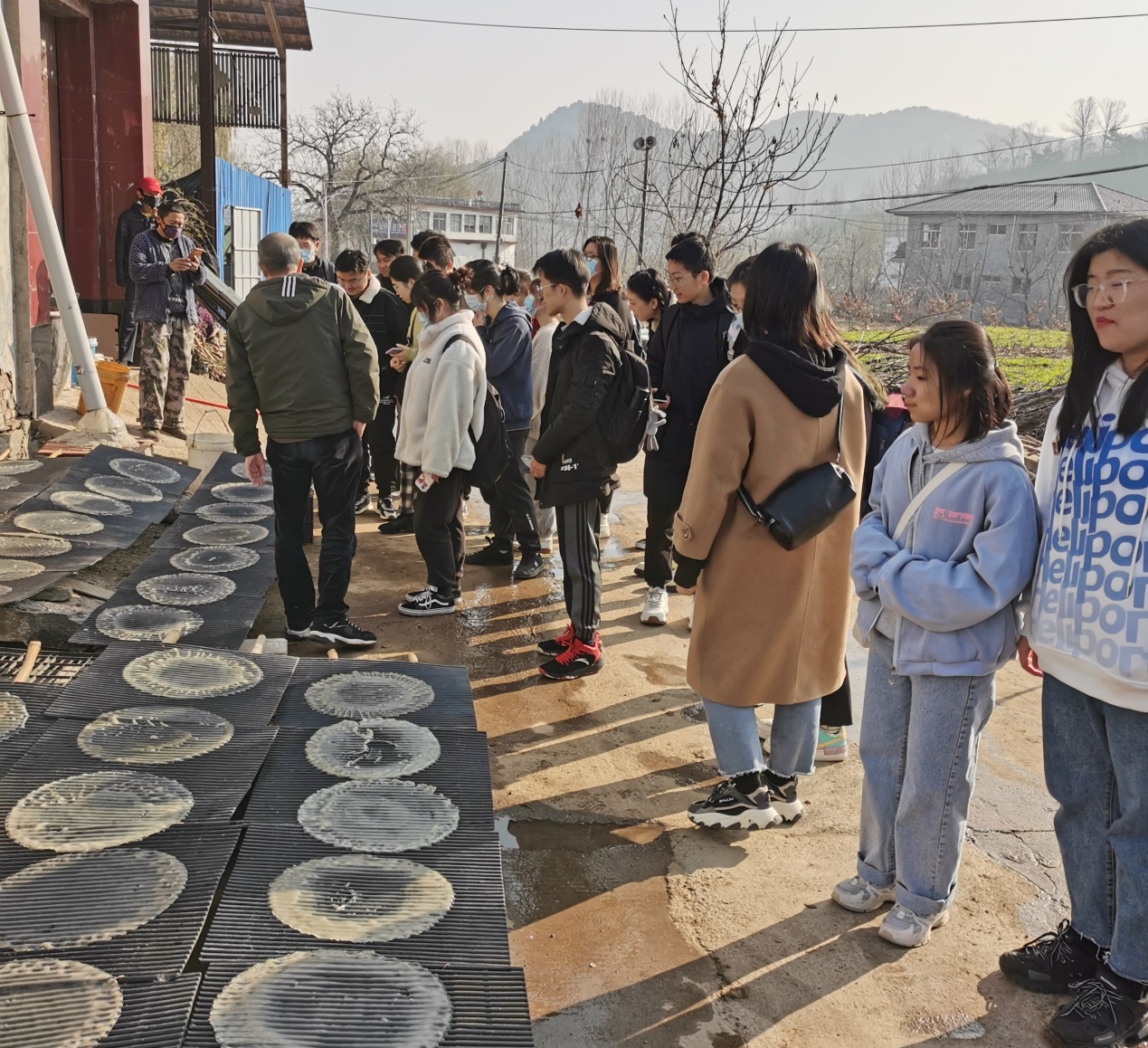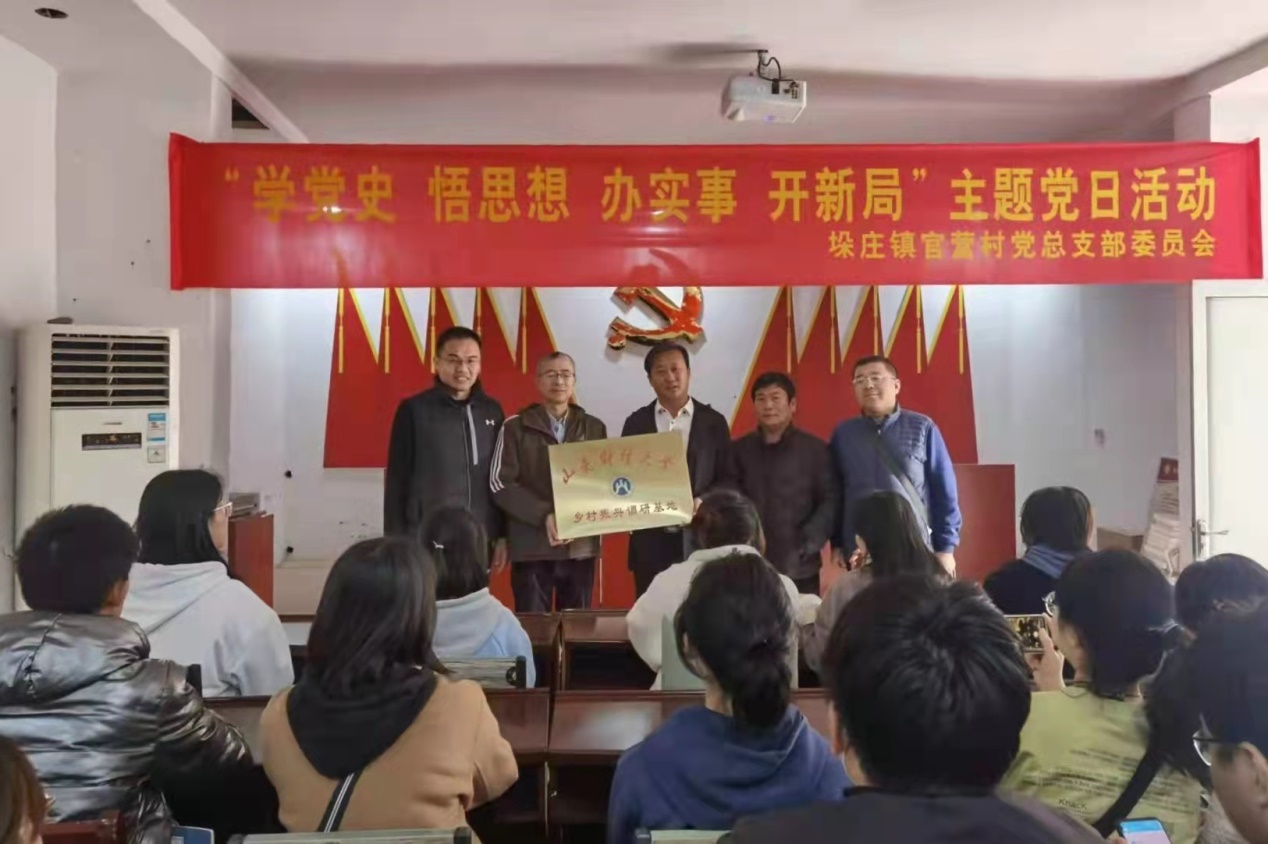 2021年11月16日,农村区域发展乡村振兴实验班同学在院党委副书记高峰,专任教师齐永华、尹双明带领下赴章丘垛庄镇官营村开展实习调研活动。官营村联合党总支书记赵荣厚、四角城村党支部书记田延峰陪同调研。