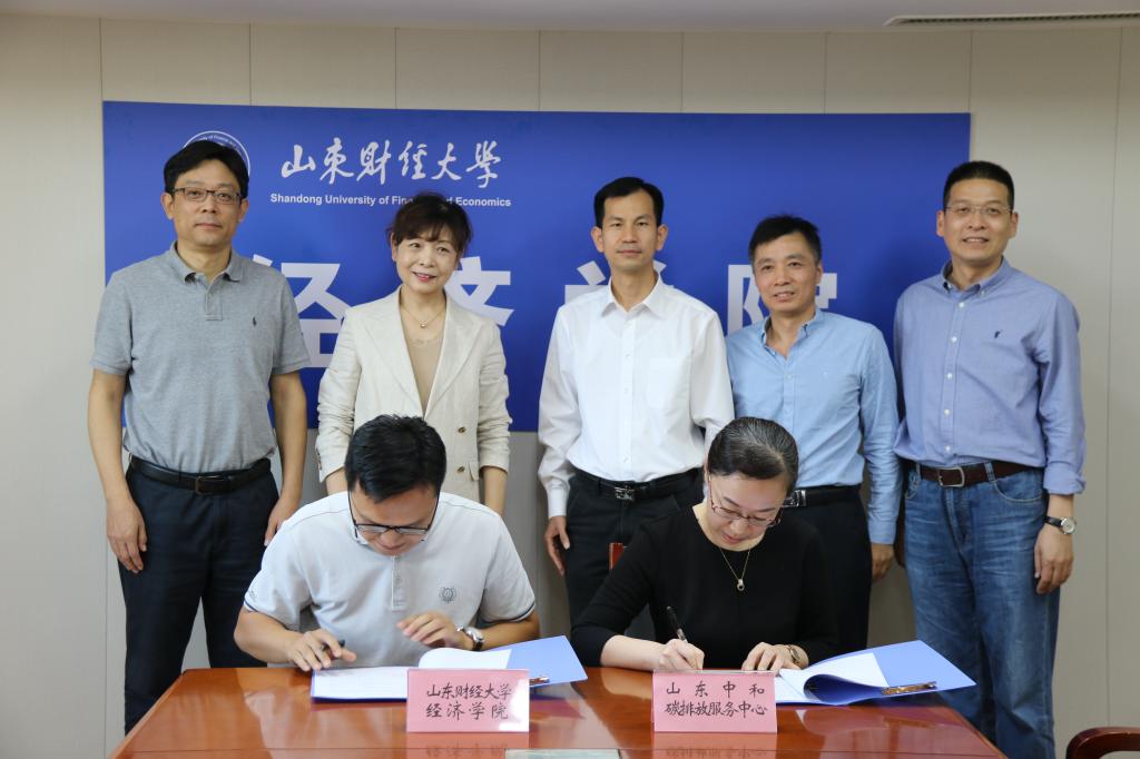 9月23日下午,太阳成城集团tyc234cc与山东中和碳排放服务中心在舜耕校区办公楼1208会议室举行战略合作签约仪式。太阳成集团tyc234cc党委委员、副校长、太阳成城集团tyc234cc院长谢申祥,太阳成城集团tyc234cc党委书记姜伟,党委副书记李冰封、陈静,副院长崔宝敏、张明志,太阳成城集团tyc234cc教授、博士生导师刘华军,山东中和碳排放服务中心总经理郑静等出席活动。会议由姜伟主持。
