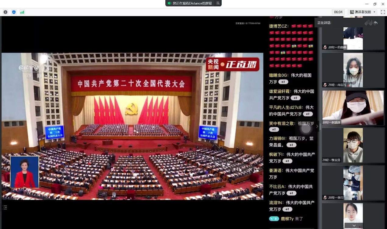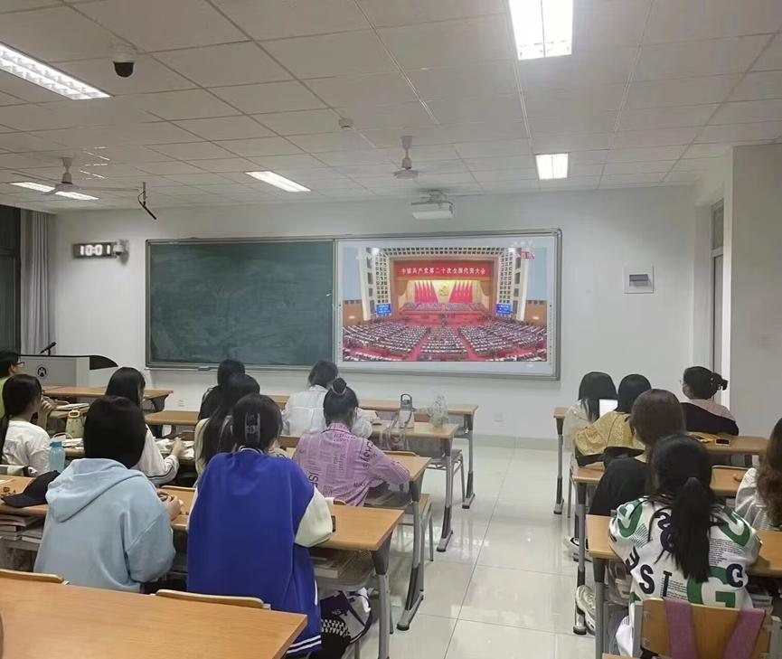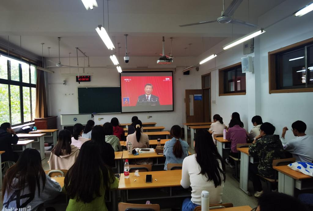 学院各级团干部、团员青年们相聚会议室、教室、宿舍内,热切关注大会进程,认真聆听、学习、热议习近平总书记的报告,分享观看心得体会,共同见证党的历史上这一重要时刻。全院研究生、本科生共44个班级团支部共组织1800余名学生观看,团支部覆盖率达100%,共有600余名学生发表在线讨论。