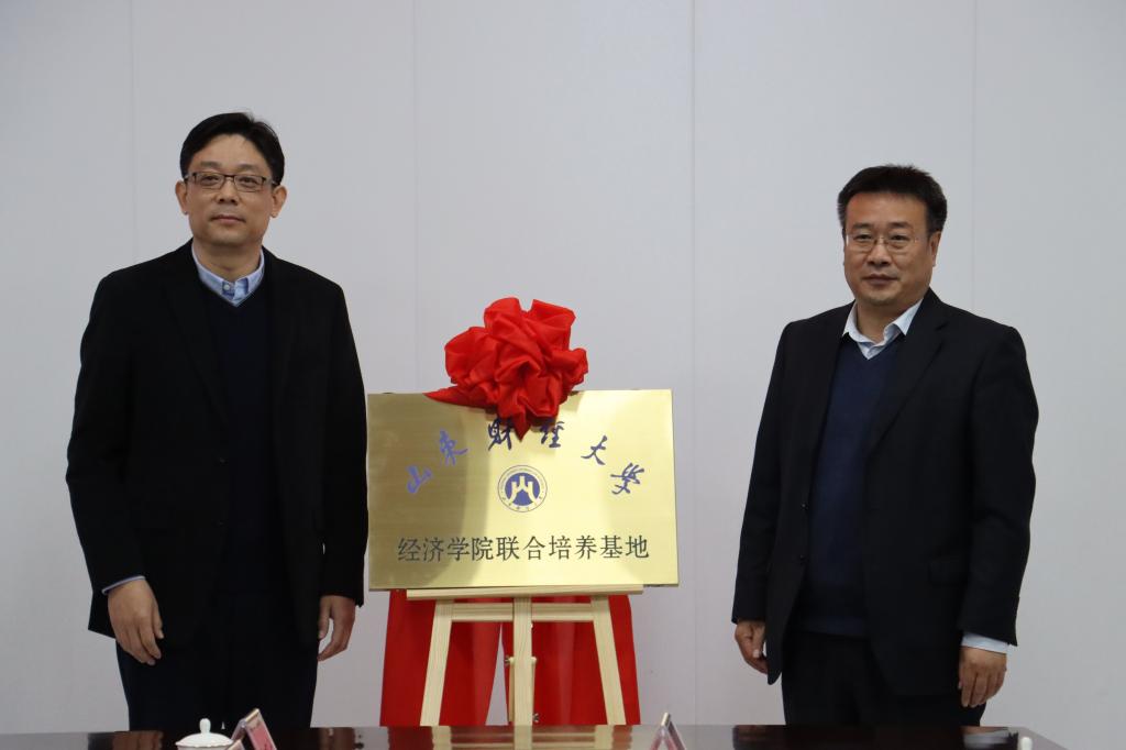 校团委社团管理部负责人谭雯雯、太阳成城集团tyc234cc副院长崔宝敏分别与滨盛集团党委副书记王赞海签约共建社会实践基地协议和院地战略合作协议。谭雯雯与孙琳共同为社会实践基地揭牌。姜伟与谷春生为联合培养基地揭牌。