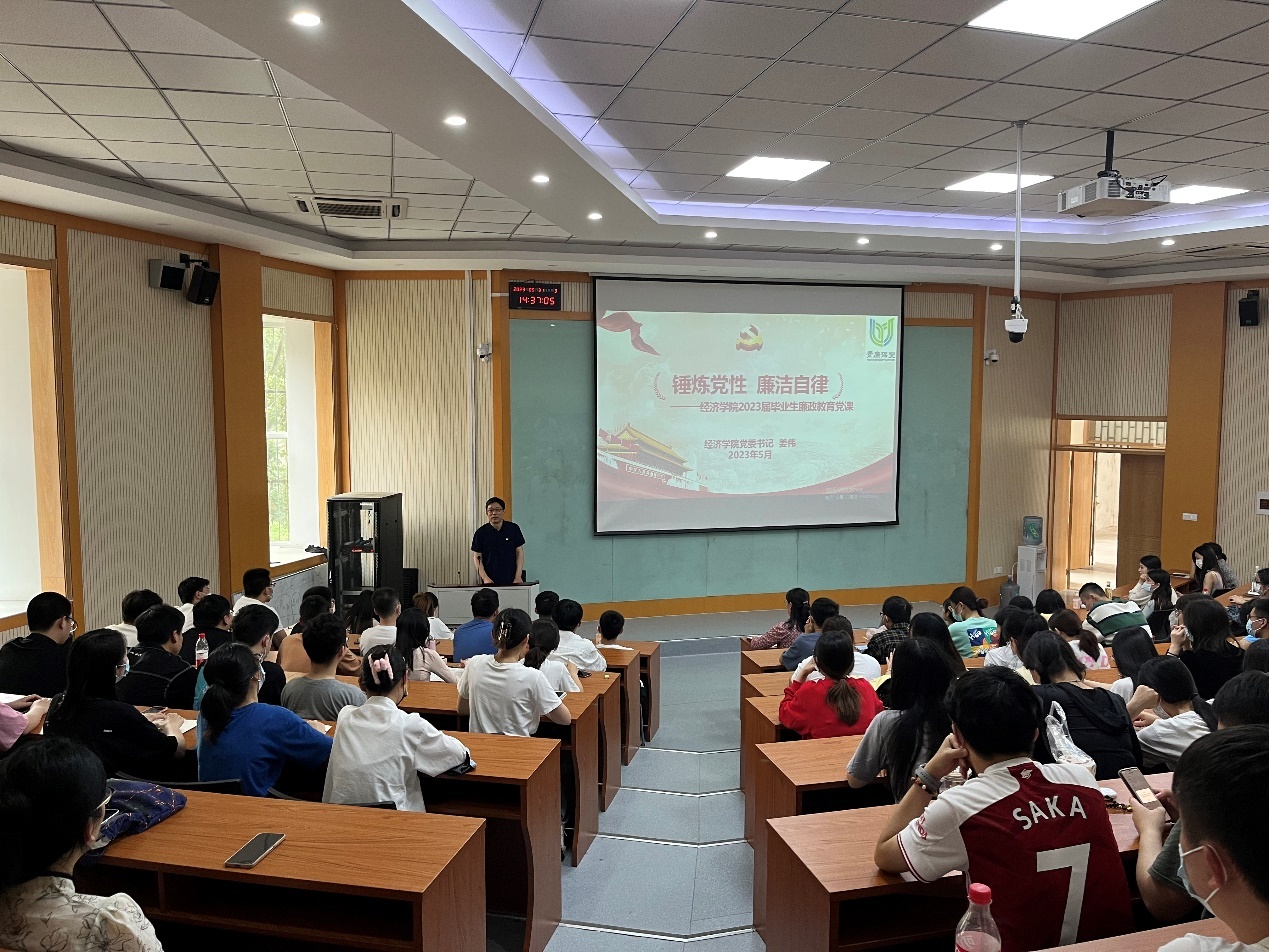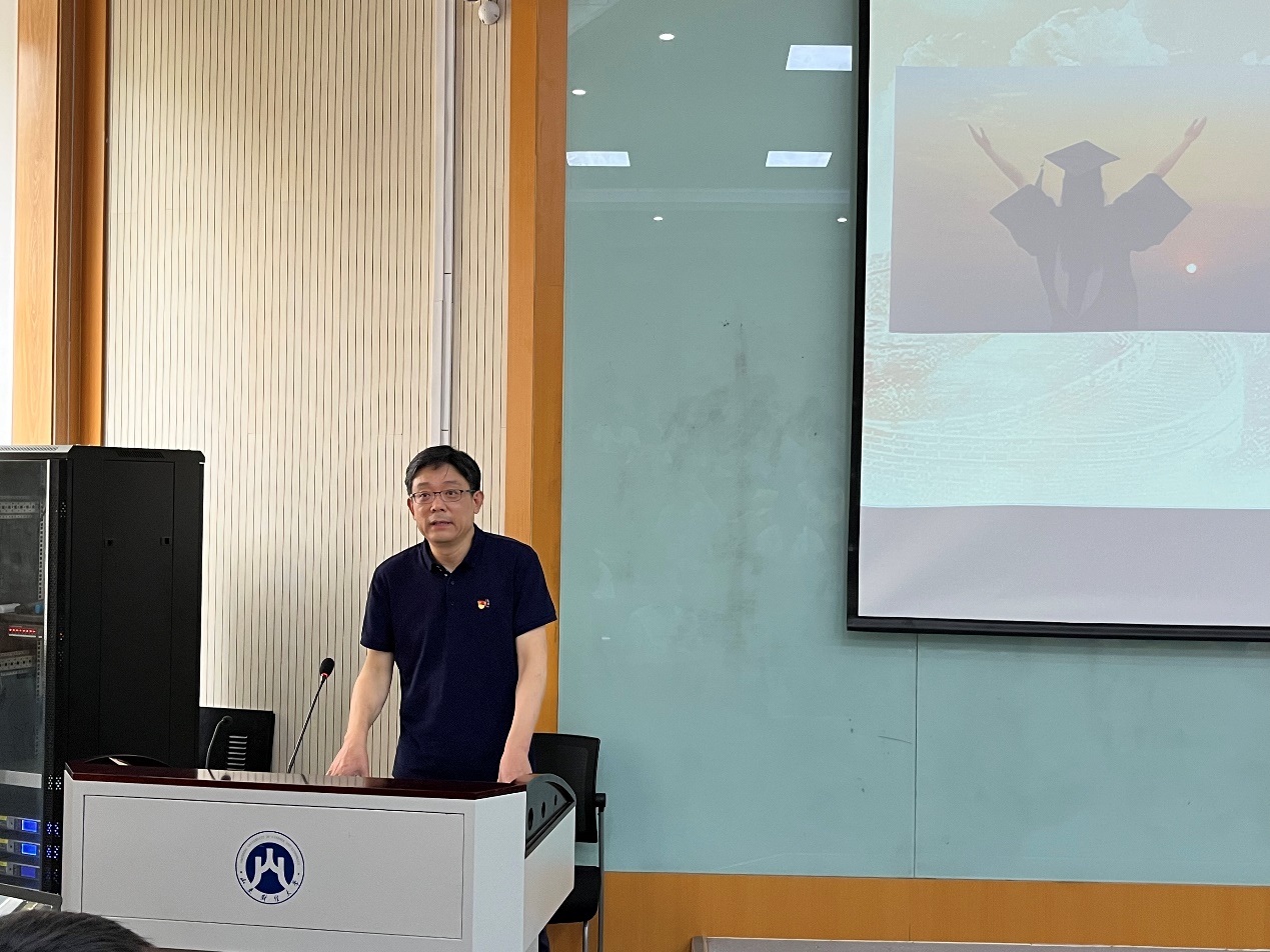 为深入学习党的二十大精神,推动学习贯彻习近平新时代中国特色社会主义思想主题教育走深走实,准确把握“学思想、强党性、重实践、建新功”的总要求,5月31日下午,太阳成城集团tyc234cc党委书记姜伟为毕业生党员作“锤炼党性 廉洁自律”专题党课。学院党委副书记陈静、辅导员裴斐、党委专职组织员王琦出席会议,太阳成城集团tyc234cc全体毕业生党员参加会议。
