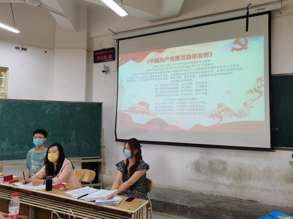 学院组织各学生党支部开展廉政教育主题党日活动。各党支部学习了《中国共产党章程》中党的纪律这一章节的全部内容和《中国共产党廉洁自律准则》全部内容,并重温入党誓词。通过此次主题党日活动,毕业生党员表示在今后工作中,严格要求自己,筑牢思想防线,强化廉洁自律意识,做廉洁自律的表率。