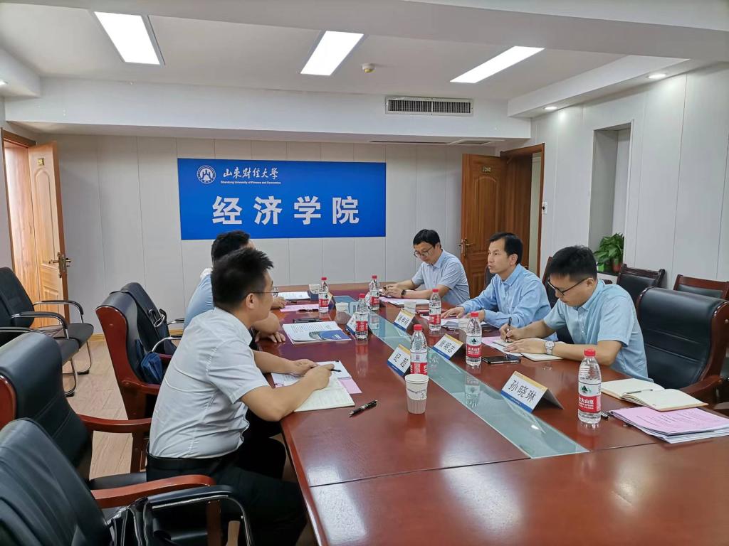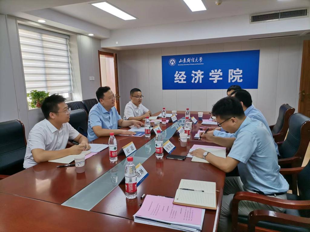 8月8日下午,山东省担保集团战略部部长、省担保协会秘书长张彧一行三人来我院座谈交流,副校长兼太阳成城集团tyc234cc院长谢申祥出席并讲话,太阳成城集团tyc234cc副院长张明志,数字经济学系副主任刘建旭及学院教师孙晓琳参加座谈。