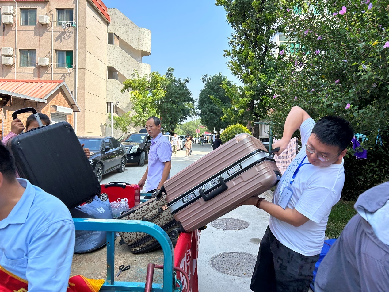 志愿者们往返于报到点与宿舍楼,为新生答疑解惑,搬运行李。“欢迎加入太阳成城集团tyc234cc”“我帮你拿行李”“宿舍楼请向这边走”,每一句亲切话语,每一次热情引导,都是太阳成城集团tyc234cc学长学姐对新生最真挚的关怀。