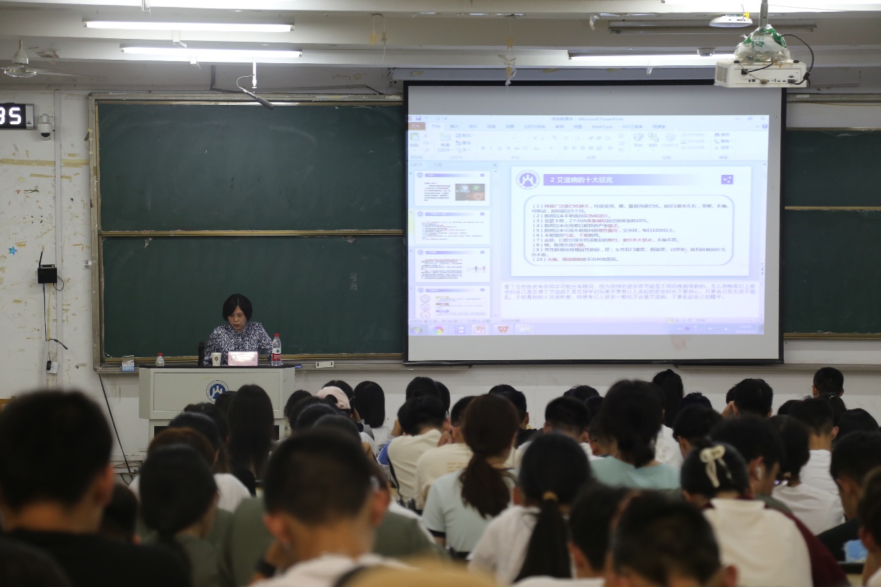 针对当下流行的一些传染病,李荣详细地为学生们介绍了其种类、传播途径、发病症状、危害以及防治措施。传染病防治,关键在于阻断传播,李荣指出,良好的生活行为习惯对于防治传染病有着密不可分的关系。在生活中,同学们应当养成勤洗手、勤通风、少聚集、公共场合佩戴口罩等良好习惯,减少感染可能性。出现病症后,应当及时上报并就医,早发现、早隔离、早治疗。随后,李荣讲述了传染病防控相关政策。