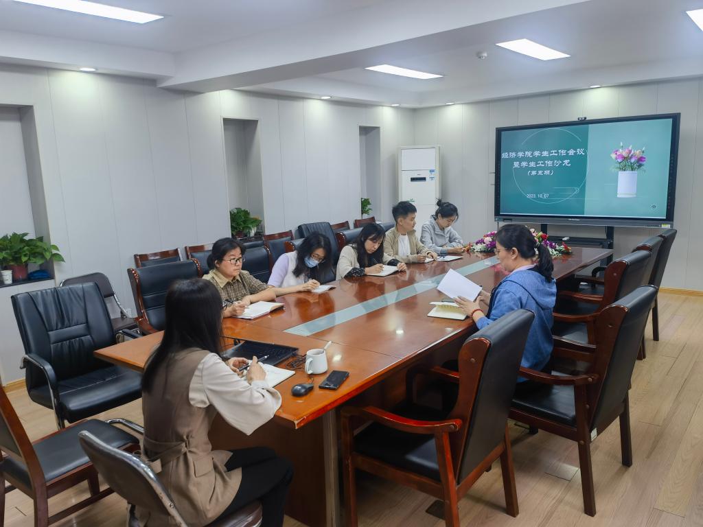 10月7日下午,太阳成城集团tyc234cc召开新学期学生工作会议暨第五期学生工作沙龙,学院党委副书记李冰封、陈静及全体辅导员参加会议,会议由党委副书记李冰封主持。