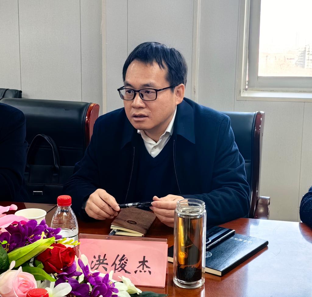 谢申祥代表学院对洪校长一行表示热烈欢迎,感谢校领导及各部门对学院工作的指导和支持,并就学院下一步如何推动高质量、内涵式发展提出工作思路和设想。他表示,学院下一步将在教师整体年龄、知识结构上进行再优化,明确发展方位,厘清发展思路,锚定有组织科研、深化人才培养、拓展国际合作、增强社会服务等方面工作,通过全体师生共同努力,为学院跨越式发展贡献力量。