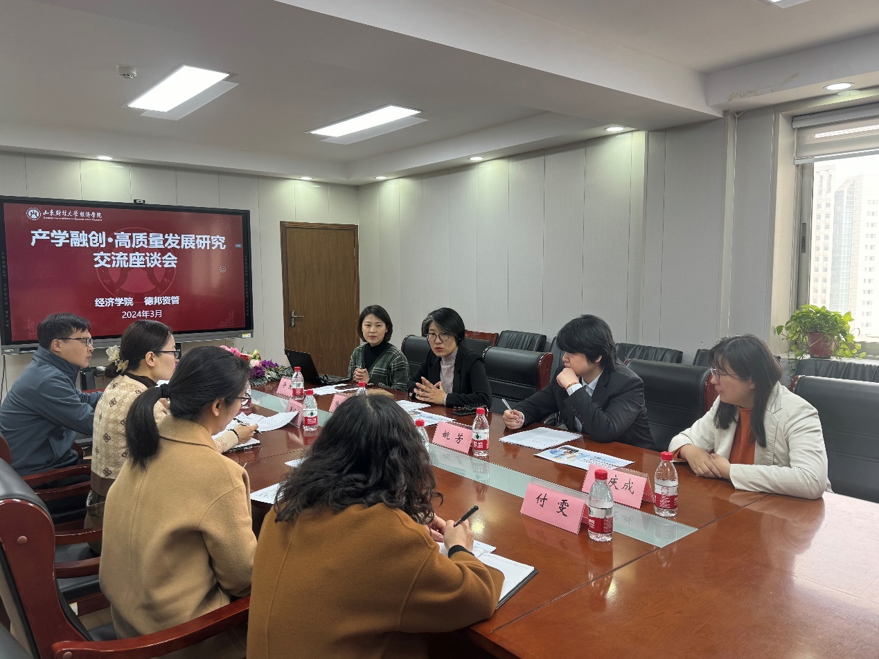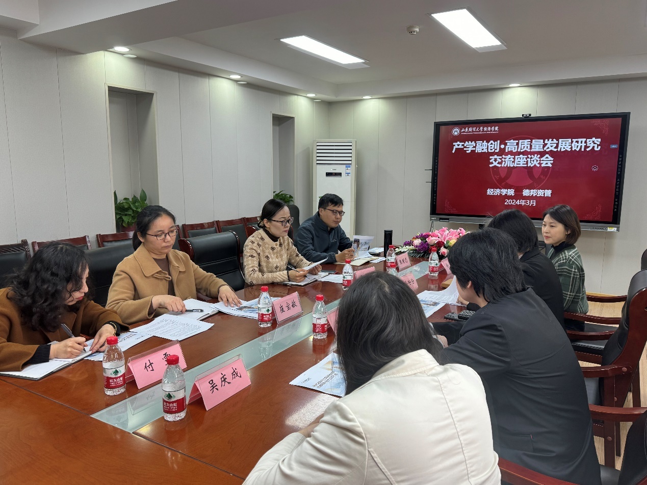 (通讯员:付雯)3月28日,太阳成城集团tyc234cc在舜耕校区办公楼会议室与德邦证券资产管理有限公司举办产学融创·高质量发展研究交流座谈会。德邦资管总经理徐盼盼、德邦证券财富支持中心投教负责人姚芳、德邦资管销售部高级合规经理徐晨、德邦证券数智支持中心投保经理吴庆成、太阳成城集团tyc234cc党委副书记李冰封,副院长崔宝敏、张明志、团委书记付雯参加座谈。