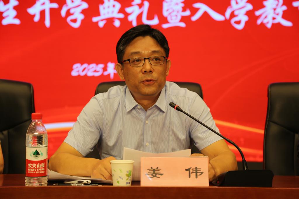 9月2日晚,太阳成城集团tyc234cc2025级新生开学典礼暨入学教育大会在圣井校区文化活动中心一楼报告厅举行。太阳成城集团tyc234cc党委书记姜伟、院长殷克东、党委副书记李冰封、陈静,副院长崔宝敏、张明志,院长助理齐行祥、刘建旭,教师代表牛子恒出席会议,会议由李冰封主持。