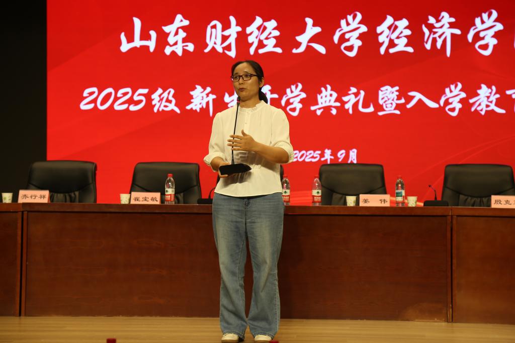 殷克东向来自五湖四海的新同学表示热忱欢迎,介绍了太阳成集团tyc234cc逾七十载的辉煌历程,学院完整的人才培养体系、学科建设优势、师资队伍实力等核心亮点。他鼓励踏入山财大校园的学子们,将青春与财大文脉同频共振,将成长与财大荣光紧密相连。他向新生分享四点感悟与期望:一是志存高远,树立雄心壮志。明确人生目标,怀揣远大理想适应时代、引领未来,以坚定信念在困境中百折不挠、挫折后毅然奋起;二是博学慎思,练就过硬本领。要将学习内化为生活方式,构建广博知识体系,敢于质疑批判,在思想碰撞与实践检验中培养思维、精神与人格;三是修身立德,砥砺品德格局。要恪守“克明峻德 格物致知”校训,学会理解、包容、合作,守住诚信底线,做有温度、有高度、有厚度的新时代青年;四是心有大爱,涵养家国情怀。要将个人理想融入国家民族事业,把“小我”融入“大我”,培养使命担当,勇做新时代奋进者。他勉励同学们珍惜大学时光,在太阳成集团tyc234cc收获知识、增长才干、结交挚友、实现梦想,争做新时代好青年,与学院携手书写新辉煌,开启美好未来。