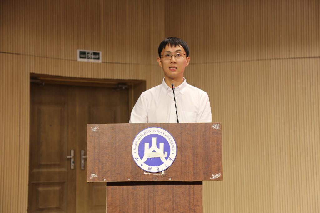 姜伟向来自全国各地的新同学致以诚挚祝贺,介绍了学院以学生为中心、以学风为指引的教学理念,聚焦提升学生综合素质、促进全面成才的工作思路与创新实践,展示学院在学术、竞赛、实践等领域的突出成果。他鼓励新生们要以知识为前行的风帆,锻炼创新实践能力,为未来奠定坚实基础,并向新生提出三点殷切期望:一是要胸怀梦想,志存高远。要以梦想作为指引前行的灯塔,以高远的志向作为不断前进的动力,让青春的梦想与时代的步伐同频共振;二是锤炼本领,追求卓越。要在锤炼本领的道路上越障排险、逢山开路,以追求卓越的气魄与勇攀高峰的斗志迎接挑战,让勤奋学习成为青春远航的动力;三是涵养厚德,担当大任。要以财大精神为根脉,潜心涵养品德修为,主动扛起时代赋予的重任,做到与民族发展同呼吸,与时代脉搏同步伐。他勉励同学们涵养品格、德才并重,在时代大任的浪潮中,争做有理想、敢担当、能吃苦、肯奋斗的新时代好青年,挥洒青春,圆梦财大,共同书写新时代的光辉篇章。