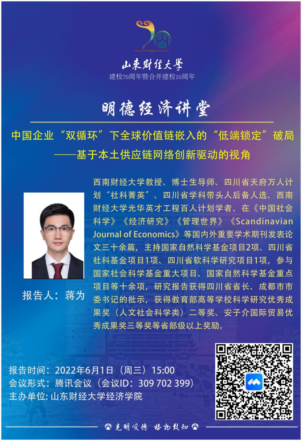 明德经济讲堂:中国企业“双循环”下全球价值链嵌入的“低端锁定”破局——基于本土供应链网络创新驱动的视角