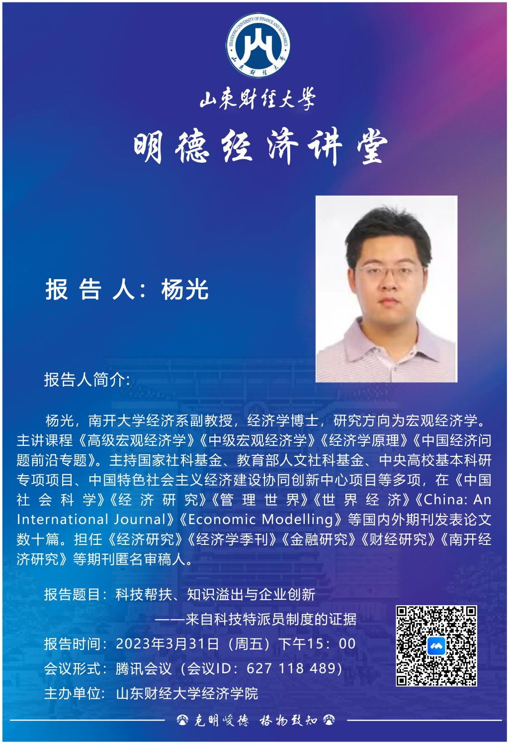 太阳成集团tyc234cc明德经济讲堂:科技帮扶、知识溢出与企业创新