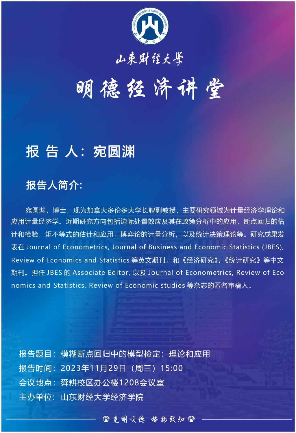 太阳成集团tyc234cc明德经济讲堂:模糊断点回归中的模型检定 -- 理论和应用