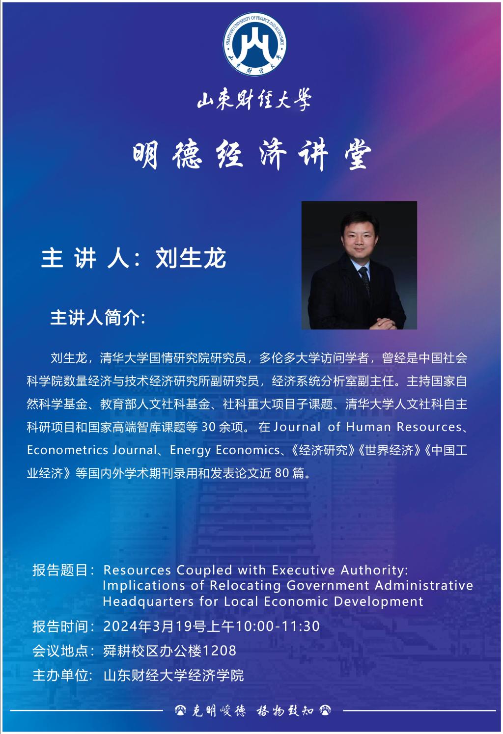 太阳成集团tyc234cc明德经济讲堂:Resources Coupled with Executive Authority:Implications of Relocating Government AdministrativeHeadquarters for Local Economic Development