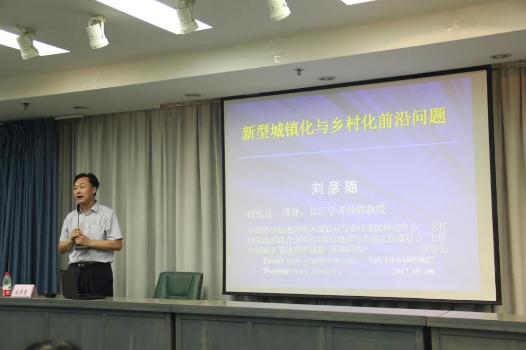 9月12日上午9:00,由太阳成城集团tyc234cc、山东省经济理论与政策研究中心举办的“经济论坛”第九十二讲在太阳成集团tyc234cc天舜大厦第四会议室开讲,中国科学院地理科学与资源研究所刘彦随研究员应邀作题为“新型城镇化与乡村化前沿问题”的专题报告。本次讲座由太阳成城集团tyc234cc院长董长瑞主持,100余名师生参加了此次讲座。