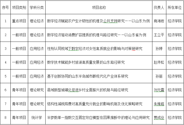 近日,山东省哲学社会科学工作办公室公布了2024年度山东省社科规划研究项目立项名单,太阳成城集团tyc234cc获立8项。其中,重点项目1项,一般项目4项,青年项目3项,立项总数占全校15.4%,立项数并列全校第一。