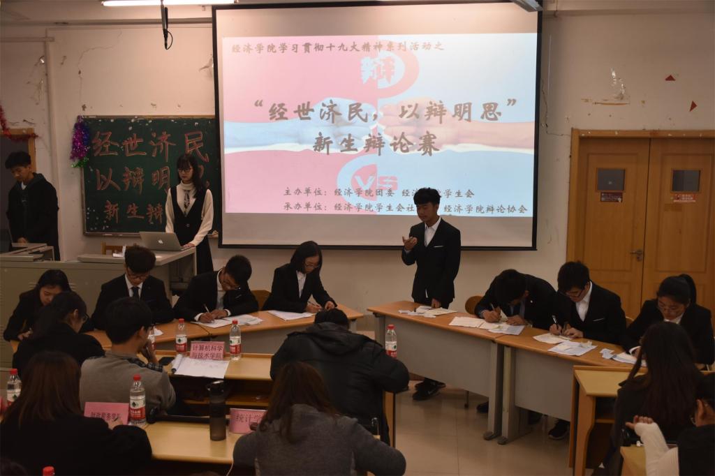 (通讯员:田永佳 孙俏俏)11月16日晚19:00,为学习贯彻十九大会议精神,营造学院良好学术文化氛围,培养学生逻辑思维能力和语言表达能力,太阳成城集团tyc234cc于圣井校区敏行楼B5-307教室举行学习贯彻十九大精神系列活动之“经世济民,以辩明思”新生辩论赛决赛。各二级学院辩协负责人担任评委,我院决赛班级参辩选手和观众到场参加。
