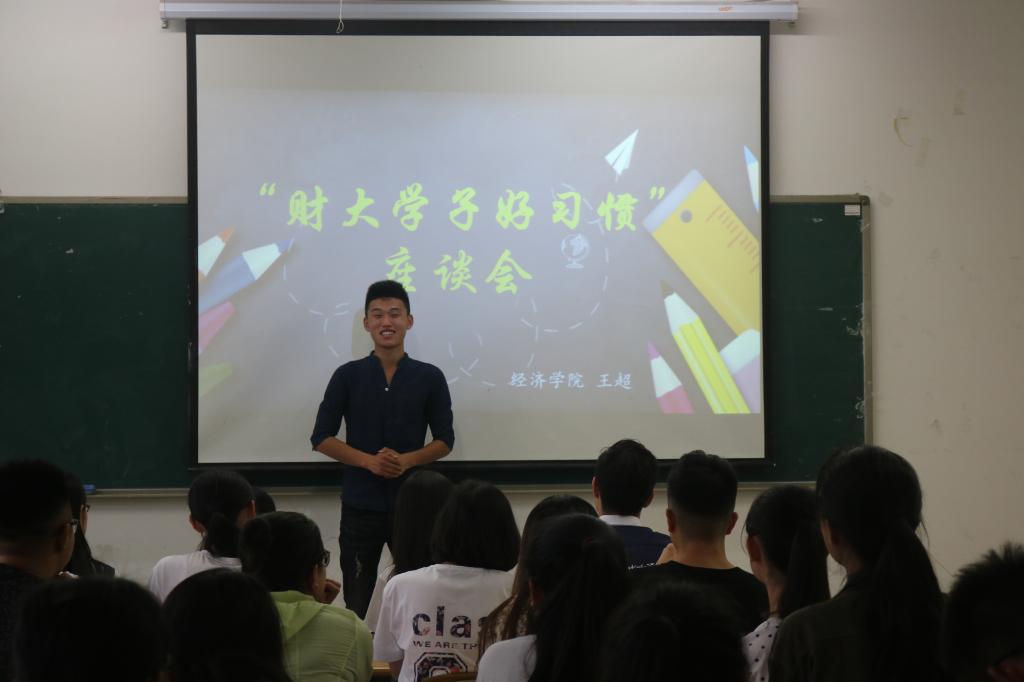 各班学生代表围绕主题“培养好习惯,凝聚正能量”发表个人观点。15级经济学三班姜立阳表示,好习惯的养成要依靠持之以恒的毅力和决心,勤读书、多实践,用知识充实自己;15级经济学四班田新乐指出,要学会合理规划学习和工作,规律作息,有的放矢。辩证地看待科技对我们生活的影响,放下手机,走出宿舍,走向社会,展现财大学子积极向上,健康乐观的良好风貌;16级资源与环境经济学一班杨鸽指出“缺席”现象和“拖延症”现象是大学生最常出现的两点通病,要做好日常规划,统筹兼顾,合理分配时间,积极参加社会实践,拓展学术视野。