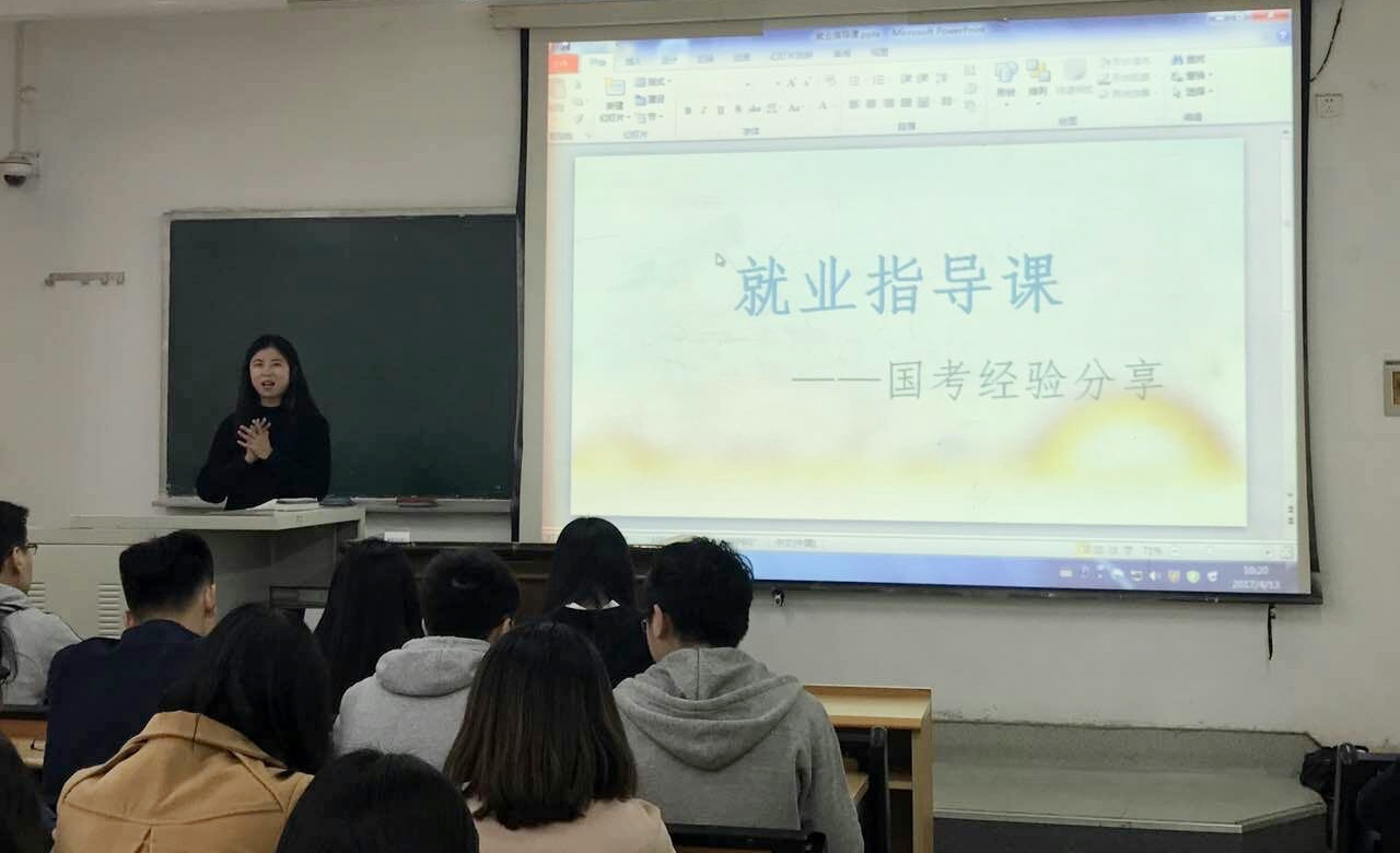 (通讯员:杨晶)4月上旬,太阳成城集团tyc234cc于舜耕校区举办就业指导系列讲座之国考经验分享会。在2017年国家公务员考试中考取湖北省荆门市国税局的雷鸣、考取海南省三亚市国税局的郭玉娇、考取山东省日照市国税局的牟淑月主讲,我院2014级学生参加。讲座由院团委辅导员周新秀、李冰封、付雯、裴斐老师主持。