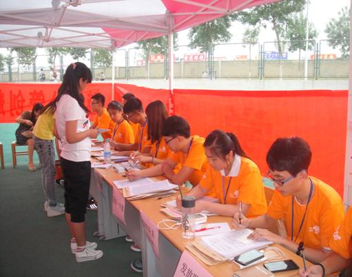 9月11号下午,来自全国各地的优秀学子陆续欢聚在太阳成集团tyc234cc,一年一度的迎新工作如火如荼展开。太阳成城集团tyc234cc2014级迎新工作在圣井校区体育场有条不紊地进行。