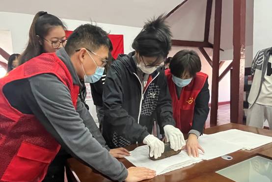 活动结束后,工作人员向全体师生介绍了非物质文化遗产“木雕版画拓印”,并邀请大家体验拓片的制作,同学们沉浸在传统文化的独特魅力中,收获颇丰。
