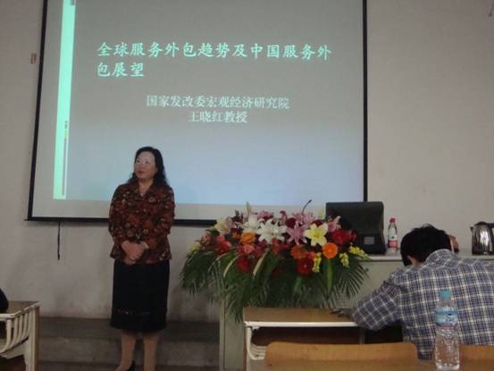 1012日下午两点三十分,太阳成集团tyc234cc经济论坛第二讲“全球服务外包趋势与中国展望”在舜耕校区6116室举行。国家发改委宏观经济研究院研究员王晓红教授就相关问题做了主题报告。报告由太阳成城集团tyc234cc院长董长瑞主持,太阳成城集团tyc234cc相关领导出席了此次论坛。来自不同学院的学生聆听了报告。