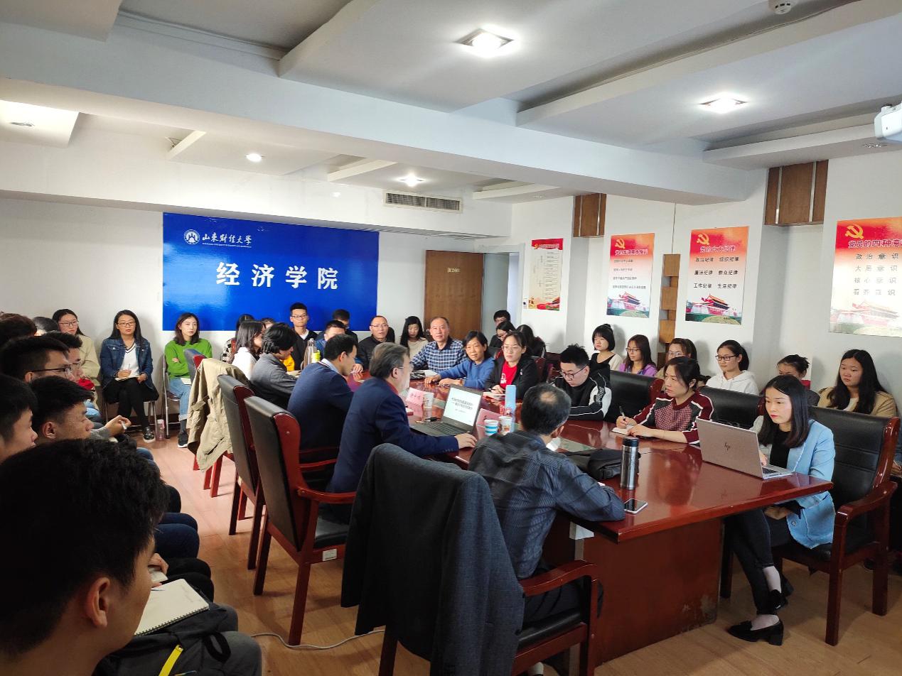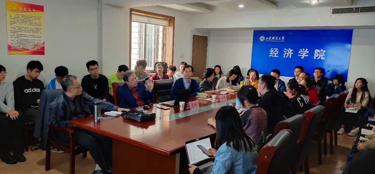 2020年10月11日下午,由我院主办的经济论坛(第116讲)在舜耕校区太阳成城集团tyc234cc1208会议室顺利举行。本期邀请到云南财经大学首席教授、太阳成城集团tyc234cc荣誉院长、金融研究院院长、新结构经济学研究中心执行主任龚刚担任主讲专家。论坛由太阳成城集团tyc234cc院长谢申祥主持,学院部分师生到会聆听。