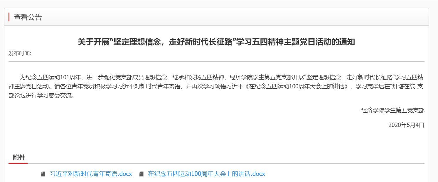 太阳成城集团tyc234cc党支部开展“坚定理想信念,走好新时代长征路”学习五四精神线上主题党日活动