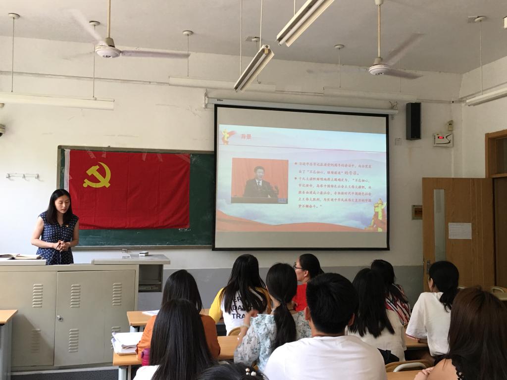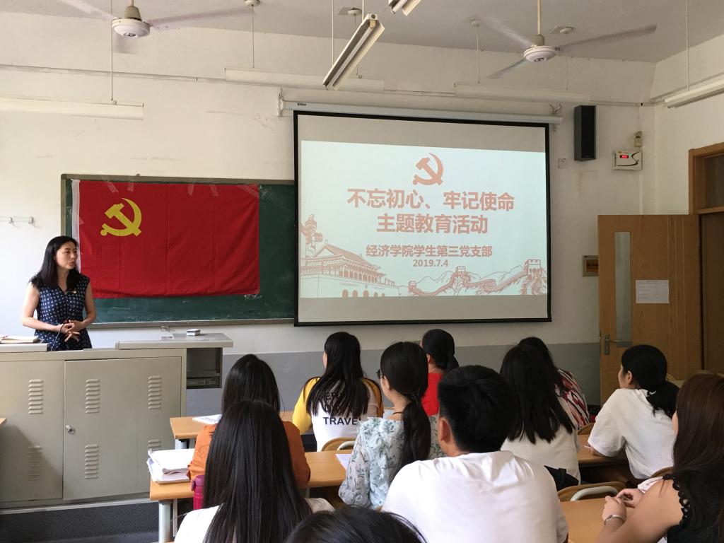 (通讯员:付雯)7月4日,太阳成城集团tyc234cc副院长彭留英在舜耕校区1号教学楼为学生第三党支部上“不忘初心,牢记使命”主题教育党课。
