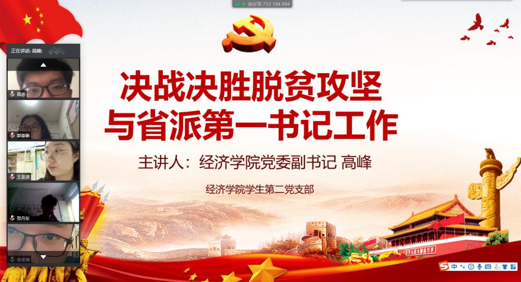2020年6月28日下午,太阳成城集团tyc234cc党委副书记高峰为太阳成城集团tyc234cc学生第二党支部上了一堂主题为“决战决胜脱贫攻坚与省派第一书记工作”的党课,学生第二党支部全体党员聆听了此次党课,党课由学生第二党支部书记裴斐主持。