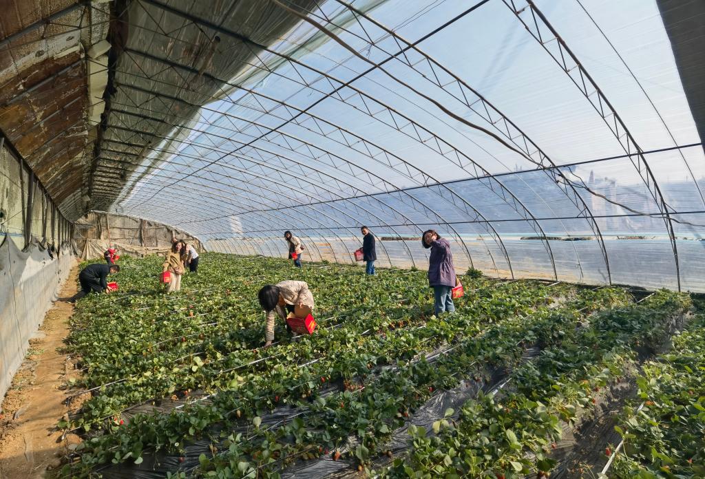 活动中,教职工们欣赏美景的同时,一路上交流工作、学习、生活体会。大家在草莓田间尽情享受清新的空气,看着大棚里红彤彤的草莓挂在枝头,亲手把甜滋滋的草莓收获在手,老师们尽情释放疫情各自在家的思念,表达着重回校园的快乐。