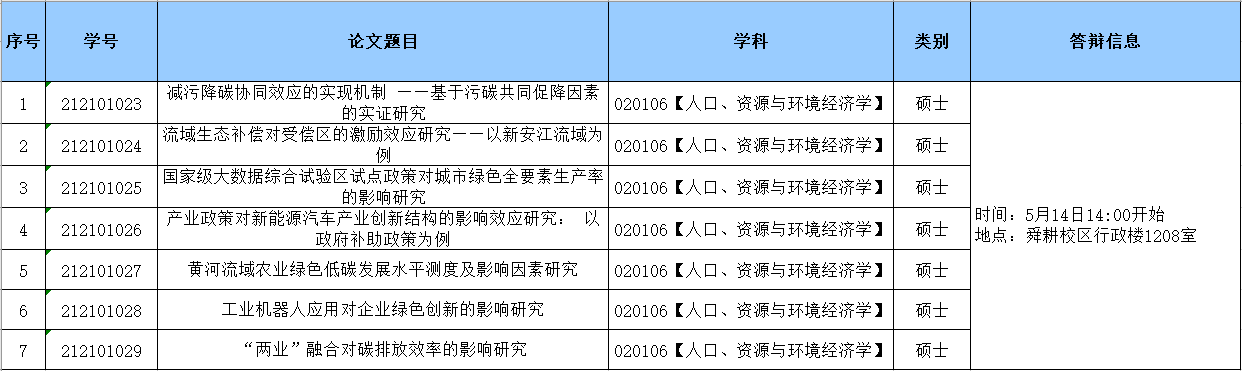 太阳成城集团tyc234cc2024届研究生学位论文答辩公告